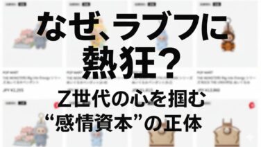 ラブブ人気Z世代はなぜラブブにハマる?消費行動と感情設計を徹底分析 Z世代がラブブにハマる理由を、彼らの消費行動と「感情設計」の観点から徹底分析。SNSトレンドとの連携、限定販売がもたらす心理的効果など、ラブブ人気の裏側にあるZ世代のインサイトに迫ります。 2025.10.15ラブブ人気