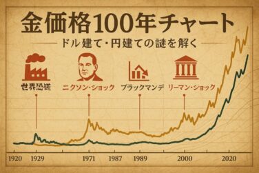 金価格の予測金価格チャート100年の推移|ドル建て・円建て価格の長期分析 金価格の過去100年にわたる長期推移をチャートで徹底分析。ドル建て・円建て価格の関係や、経済危機との相関など、データに基づいた金価格のすべてを解説します。 2025.11.04金価格の予測