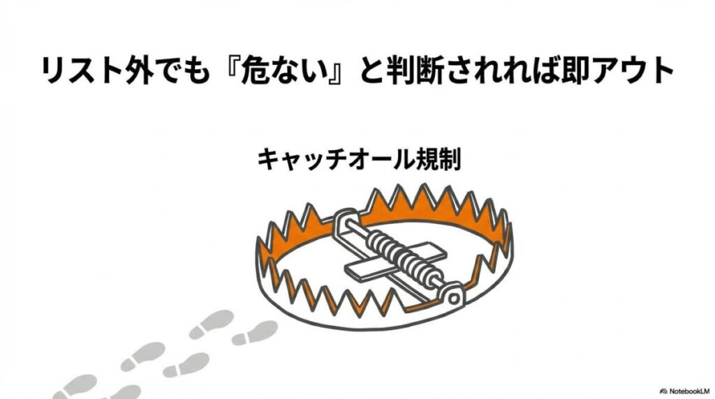 2026年の実務において、最も予測不能なリスクが「キャッチオール規制」です。