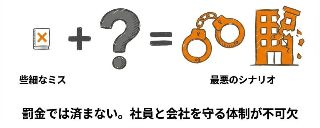 いえ、個人の刑事責任を問われるリスクや、日本本社まで「不可信頼リスト」に入れられる最悪のシナリオも想定しなければなりません。社員を守るための、一歩踏み込んだ体制が不可欠です。