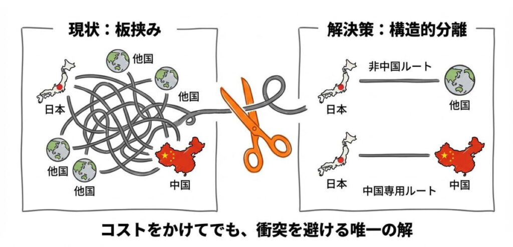 - 構造的分離:サプライチェーンを「中国系」と「非中国系」で物理的に分ける戦略。
