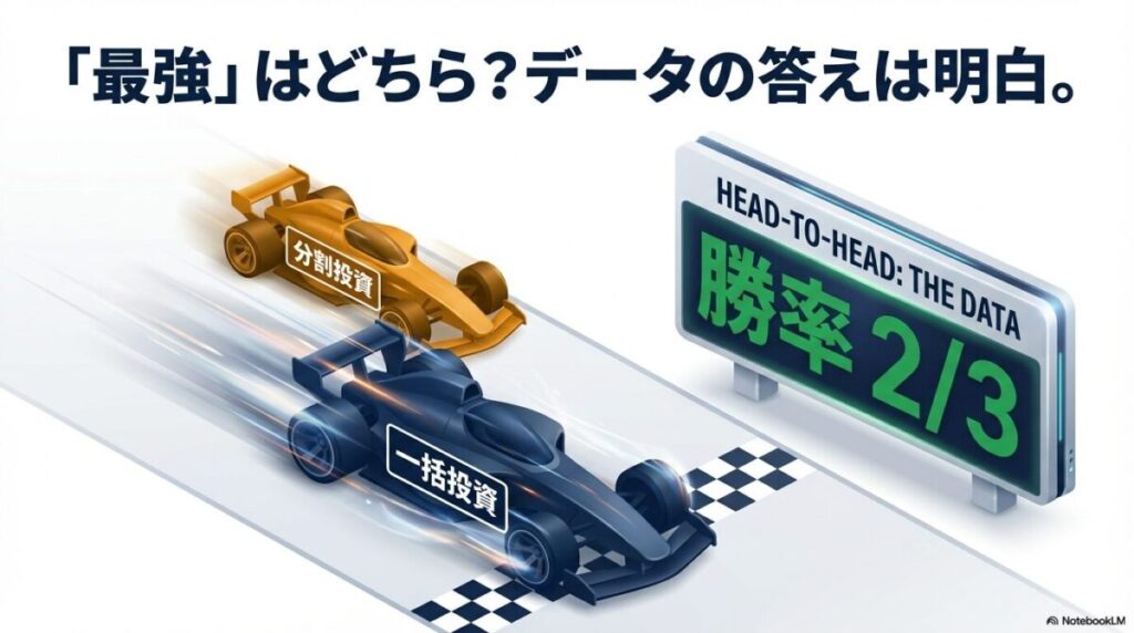 株式60%・債券40%のポートフォリオでは、一括投資がドルコスト平均法に勝利する確率は約60〜70%でした。