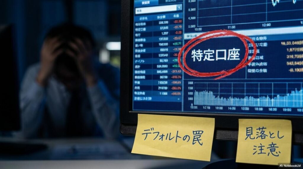 - デフォルト設定の確認: 注文画面の初期状態が「特定口座」になっている場合、注意深く選択し直す必要があります。