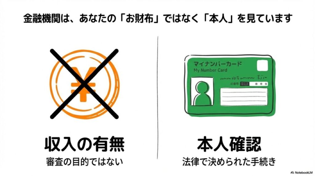 ここでは、なぜ収入がなくても口座開設ができるのか、そして金融機関の審査で実際に見られているポイントについて解説します。