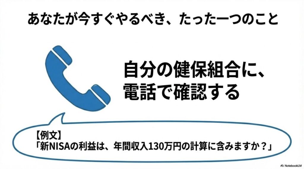 税制上の扶養と社会保険の扶養は別物です。「130万円の壁」にNISAの利益が含まれるかは、あなたが加入している健康保険組合の判断次第です。自己判断せず、必ず事前に確認しましょう。